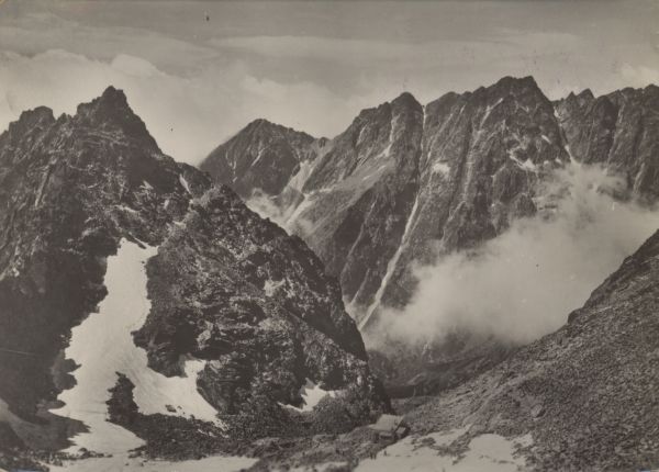 VYSOKÉ TATRY - pohµad z Váhy: Kôpky (2360 m), Malá Baąta (2289 m), Predná Baąta (2366 m), Satan (2432 m), Diablovina (2390 m), Zadná Baąta (2380 m) a chata pod sedlom Váhy