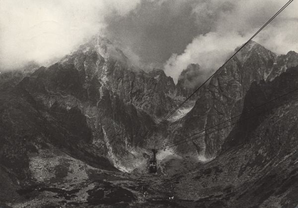 VYSOKÉ TATRY Lanovka na Lomnický ątít (2634 m), v pravo Západná Vidlová veľa, Vidlové sedlo (2413 m), Veµká Vidlová veľa (2517 m) a Keľmarský ątít (2556 m)