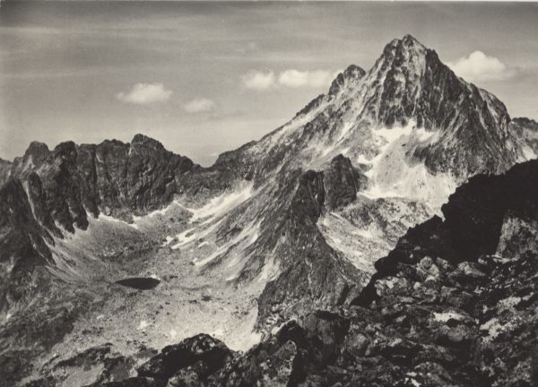 Tatry Wysokie. Widok z Tępej na Smoczy Staw. W tle Kopa Popradzka, Ciężki Szczyt, Wysoka i Smoczy Szczyt.