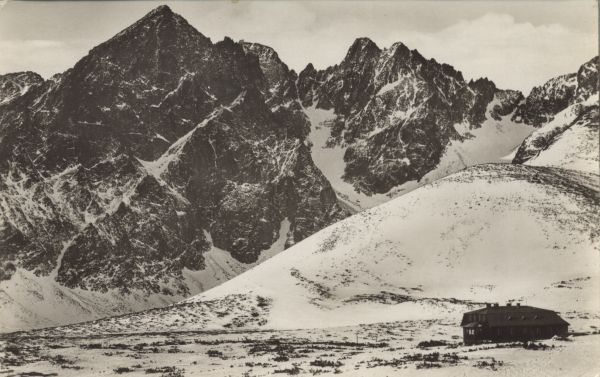 Vysoké Tatry - Keľmarská chata 1614 m. Keľmarský ątít 2556 m. Lomnický ątít 2634 m. Pyąný ątít 2625 m.
