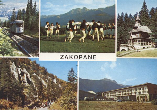 ZAKOPANE. Kolejka na Gubałówkę. Regionalny Zespół Pieśni i Tańca "Romanka". Kaplica w Jaszczurówce proj. S. Witkiewicza. Dolina Strążyska. Ośrodek Sportowy.
