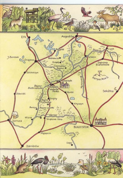 Schematyczna mapa Biebrzańskiego Parku Narodowego.