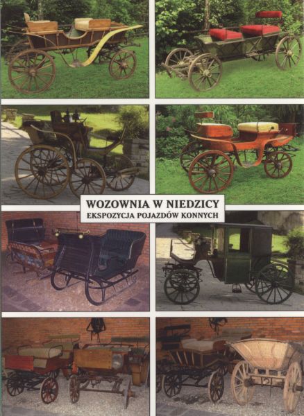 Fragment ekspozycji. W środku napis: WOZOWNIA W NIEDZICY, EKSPOZYCJA POJAZDÓW KONNYCH.