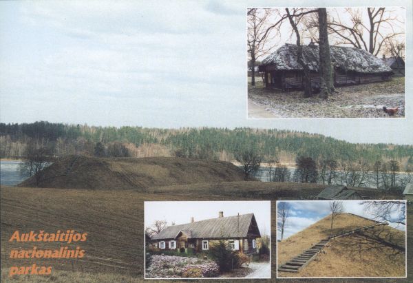 Auksztocki Park Narodowy na Litwie. Pocztówka 4. elementowa. Zabytki architektury.
