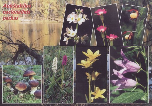 Auksztocki Park Narodowy na Litwie. Pocztówka 8 elementowa. Roślinność, pejzaż.