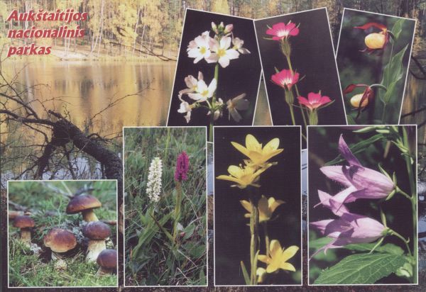 Auksztocki Park Narodowy na Litwie. Pocztówka 8 elementowa. Roślinność, pejzaż.