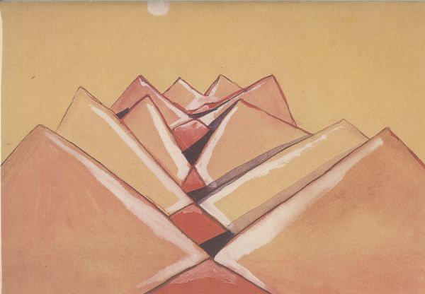 Reprodukcja akwareli Andrzeja Wróblewskiego pt. Góry czerwone.