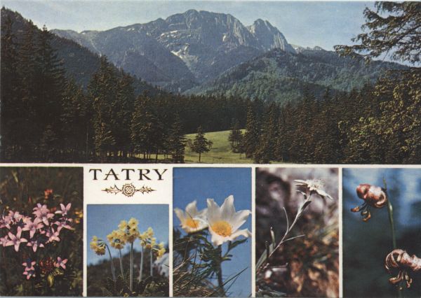 TATRY. Giewont (1894 m). Roślinność Tatr: goryczka, pierwiosnek wyniosły, sasanka alpejska, szarotka, lilia złotogłów.