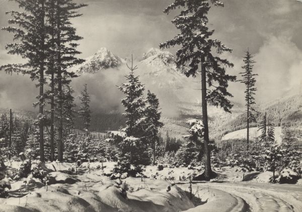 Pocztówka użyta w obiegu pocztowym, korespondencja. Znak graficzny z tekstem: V PROSPECH CESTOVNÉHO RUCHU. Kčs 0,20. Logo wydawcy.