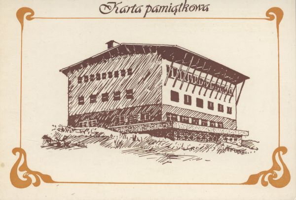 Schronisko na Polanie Kalatówki - Hotel Górski. Szkic w ozdobnej ramce, u góry napis: Karta Pamiątkowa.