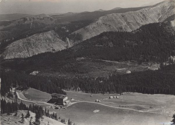 Widok z rejonu Kalackiego Upłazu na Polanę Kalatówki. Widać schronisko - Hotel Górski i szałasy na polanie. W tle Kopieniec, Dolina Jaworzynki.