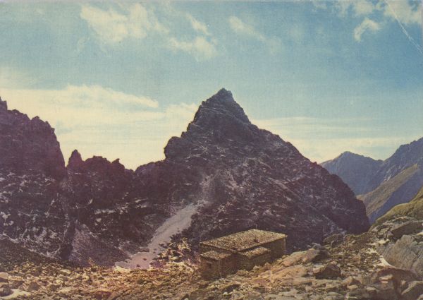 TATRY WYSOKIE. Chata pod Rysami, najwyżej położone schronisko w Czechosłowacji. W tle z lewej Smocza Grań, Popradzka Kopa, w prawo Skrajna i Mała Baszta.