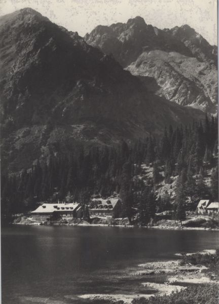 Hotel górski nad Popradzkim Stawem. W tle Mała Baszta i Szatan.