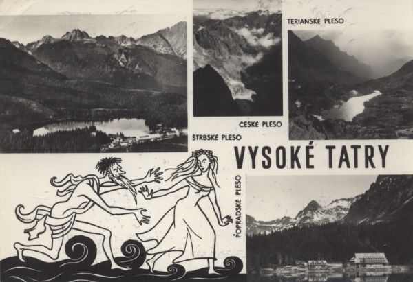 VYSOKÉ TATRY. ŠTRBSKÉ PLESO. ČESKÉ PLESO. POPRADSKÉ PLESO. TERIANSKÉ PLESO. O pôvodu tatranských plies, zvaných "morská oká", sa zachovala pekná ľudová povest. Keď ešte na zemi nežili ľudia, uvidel Vodokrál pod Tatrami mladú bohyňu Zemdcéru. Zapáčila sa mu a váhil ju do svojho podmorského královstva. Zemdoéra však odmietla a skryla sa medzi horské štíty. Vodokráľovi pomocníci, morské prúdy, prenikli za ňou až do Tatier, kde vytvorili jazerá. Keď sa do nich Zemdcéra raz pozrela, Vodokráľ sa jej zmocnil. Neskoršle mu ušla zpäť do Tatier, no vždy, keď si na ňu Vodokráľ zaspomína, nahnevá sa, a voda v "morských okách" sa búrlivo rozčerí.