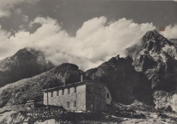 Schronisko Téryego w Dolinie Pięciu Stawów Spiskich. W tle Mały Lodowy Szczyt i Lodowa Kopa.