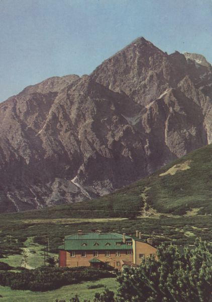 Schronisko Kieżmarskie w Dolinie Białych Stawów. W tle Mały Kieżmarski Szczyt i Łomnica.