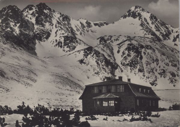 Schronisko Kieżmarskie w Dolinie Białych Stawów zim±. W tle od lewej: Kozi Szczyt i Jagnięcy Szczyt.