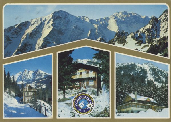 Tatry Wysokie. Sławkowski Szczyt i Gerlach. Schronisko Bilíka, w tle grupa Łomnicy. Schronisko im. kpt. Nálepki w Dolinie Małej Zimnej Wody. Schronisko Kozica.