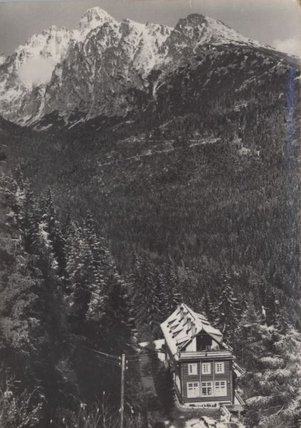 Schronisko Bilika pod Siodełkiem. W tle Łomnica i Dolina Małej Zimnej Wody.
