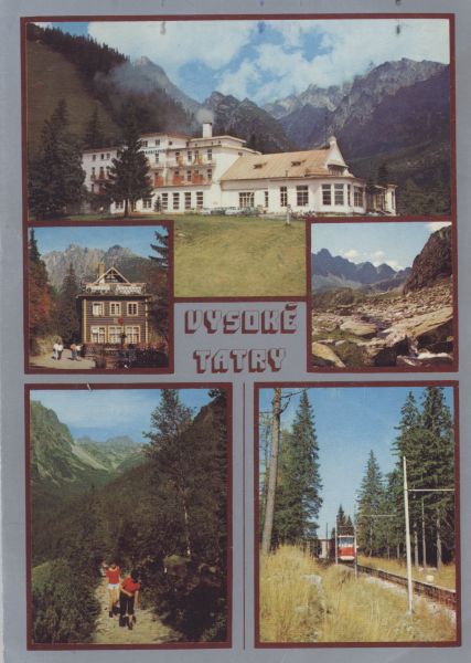 Kolej linowo-terenowa Stary Smokowiec - Siodełko. Pomiędzy zdjęciami napis: Vysoké Tatry.