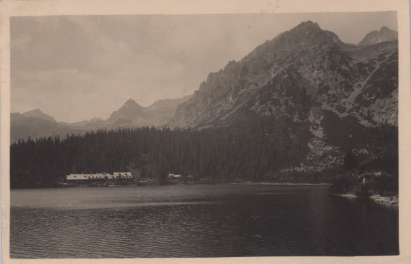 Pocztówka użyta w obiegu pocztowym, korespondencja. Dodatkowo pieczęć: "P.P. CHATA U POPRADSKÉHO PLESA 1513 m.n.m.".