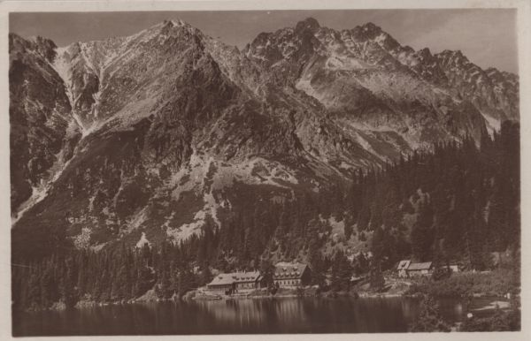 Schronisko nad Popradzkim Stawem w Dolinie Mięguszowieckiej. W tle Grań Baszt z Szatanem.