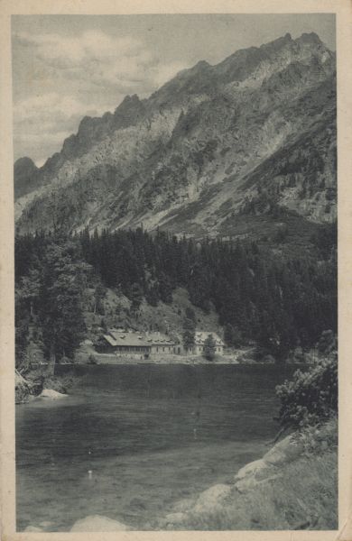 Pocztówka użyta w obiegu pocztowym, korespondencja. Logo wydawcy. Dodatkowo pieczęć: "P.P. CHATA U POPRADSKÉHO PLESA 1513 m.n.m.".