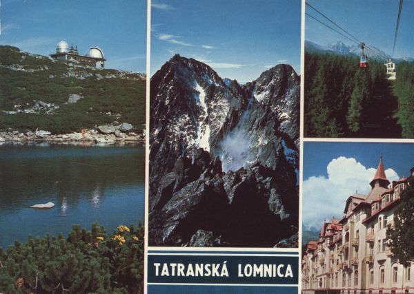 Tatranská Lomnica VYSOKÉ TATRY - WYSOKIE TATRY - HOHE TATRA - THE HIGH TATRAS Astronomickę ústav SAV na Skalnatom plese /1780 m/. Lomnickę čtít /2632 m/, Pyčnę čtít /2623 m/ a KeŸmarskę čtít /2558 m/. Tatranská Lomnica, kabinková lanovka. Grandhotel Praha