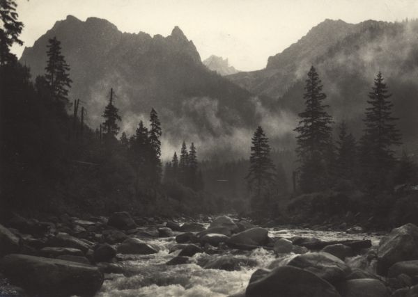 VYSOKÉ TATRY Pohľad z Bielovodskej doliny na Skorušniak (1804 m, vľavo) a Vyšný Žabí Štít (2259 m) nad Žabou dolinou Bielovodskou.