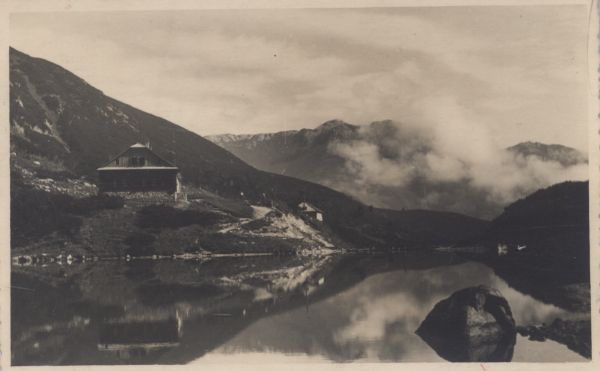 Schronisko przy Zielonym Stawie Kieżmarskim. W tle grań Tatr Bielskich: Jatki i Bujaczy Wierch (z prawej).