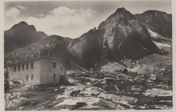 Schronisko Téryego w Dolinie Pięciu Stawów Spiskich. W tle Mały Lodowy Szczyt i Lodowa Kopa.