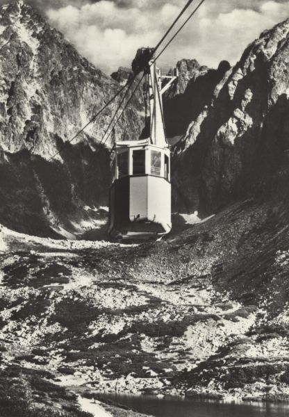 Tatry Wysokie - Łomnicki Staw. Kolej linowa na Łomnicę. Tytuł również w języku: ang., niem., ros.
