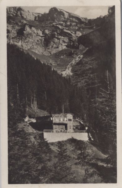 Schronisko Szarotka Klubu Słowackich Turystów i Narciarzy w Dolinie Siedmiu ¬ródeł. W tle Skalne Wrota.