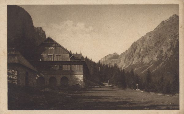 Schronisko pod Kozicą na Polanie Staroleśnej. W tle Pośrednia Grań.