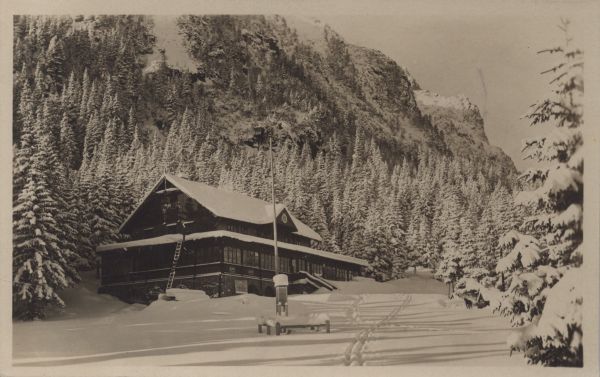 Schronisko pod Kozicą na Polanie Staroleśnej zimą.