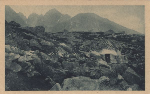 VYSOKÉ TATRY. Betonová chata u skalnatého plesa 1752 m.
