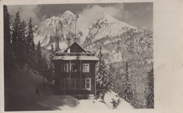 Schronisko Bilika pod Siodełkiem zimą. W tle Łomnica.