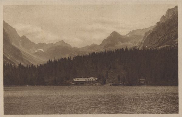 Schronisko nad Popradzkim Stawem w Dolinie Mięguszowieckiej. W tle Koprowy Wierch i Wołowiec Mięguszowiecki.
