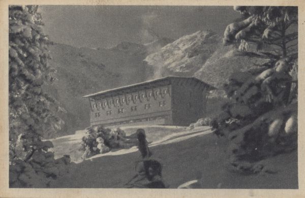 Hotel górski na Kalatówkach w zimie. W tle Suchy Żleb.