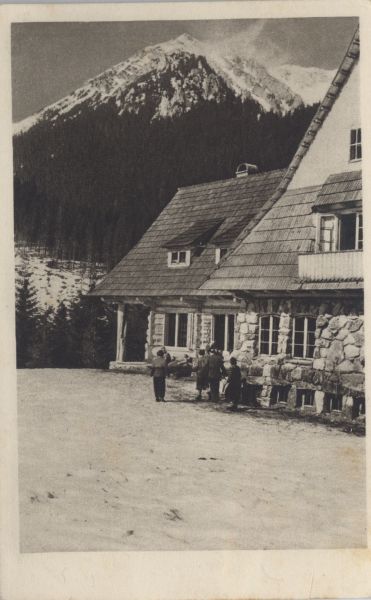 Schronisko na Hali Ornak w Dolinie Kościeliskiej zimą. W tle Kominiarski Wierch.