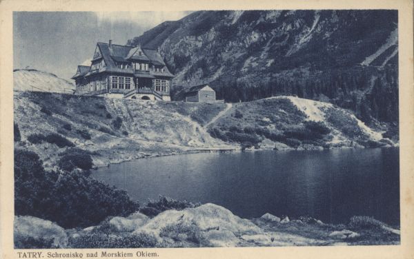 Pocztówka użyta w obiegu pocztowym, korespondencja. Dodatkowo pieczęć: "MORSKIE OKO w TATRACH 1400 m. SCHRONISKO POLSKIEGO TOWARZYSTWA TATRZAŃSKIEGO".