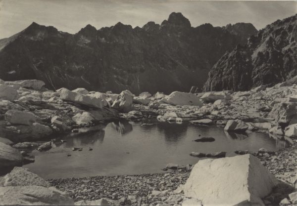 TATRZAŃSKI PARK NARODOWY [Słowacja]. Dolina Staroleśna. Widok znad Wyżnich Strzeleskich Stawów na Sławkowską Przełęcz, Skrajną Staroleśną Turnię, grań Warzęchowych Turni i Staroleśny Szczyt.