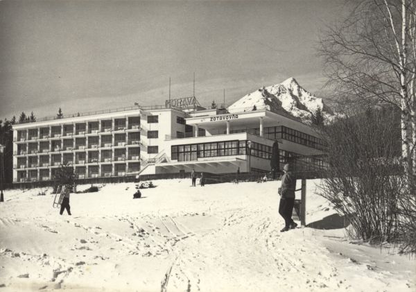 VYSOKÉ TATRY - Tatranská Lomnica (850 m) Zotavovňa ROH Morava. V pozadí Slavkovský štít (2452 m)
