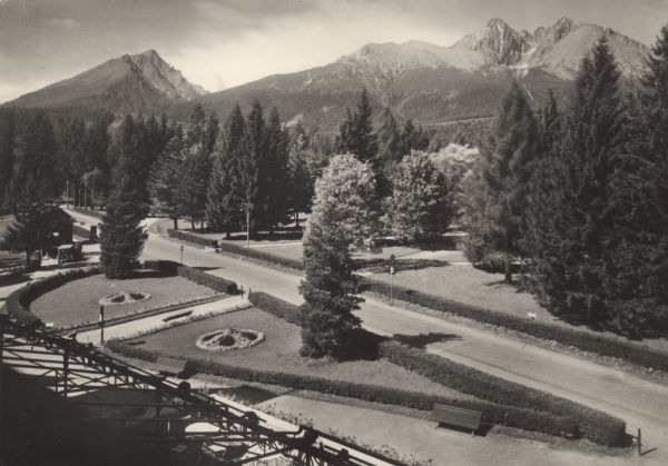 VYSOKÉ TATRY - Tatranská Lomnica V pozadí Slavkovskę (2453 m) a Lomnickę čtít (2634 m)