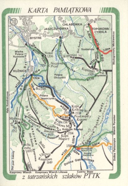 Karta pami±tkowa z tatrzańskich szlaków PTTK - szkic mapy okolic Ku¼nic i Hali G±sienicowej.