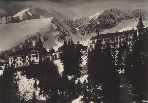 Hotele Krywań i Hviezdoslav w Szczyrbskim Jeziorze zim±. W tle Krywań, Siodełkowa Kopa i Ostra.