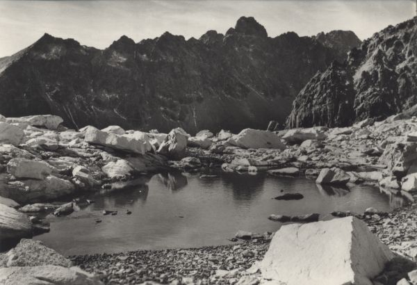 TATRANSKÝ NÁRODNÝ PARK Veľká Studená dolina. Pohľad od Vyšných Streleckých plies na Slavkovské sedlo (2293 m), Východnú Slavkovskú vežu (2356 m), hrebeň Skrinicových veží a Bradavicu (2492 m).