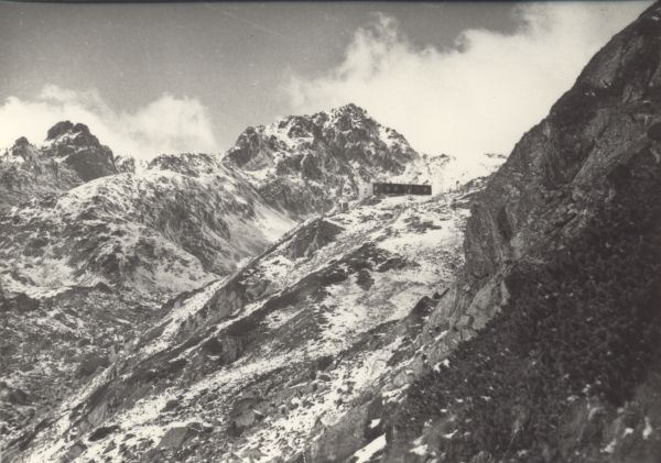 Tatrzański Park Narodowy [Słowacja]. Schronisko Zbójnickie w Dolinie Starole¶nej. Z lewej Dzika Turnia, z prawej ¦wistowy Szczyt.