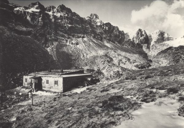 TATRANSKÝ NÁRODNÝ PARK Veľká Studená dolina. Zbojnícka chata (1960 m), v pozadí zľava hrebeň Skrinicových veží, Bradavica (2476 m), Kupola (2414 m), Východná Vysoká (2428 m) a sedlo Prielom (2288 m)