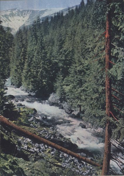Potok Chochołowski w Dolinie Chochołowskiej. W tle Rakoń.